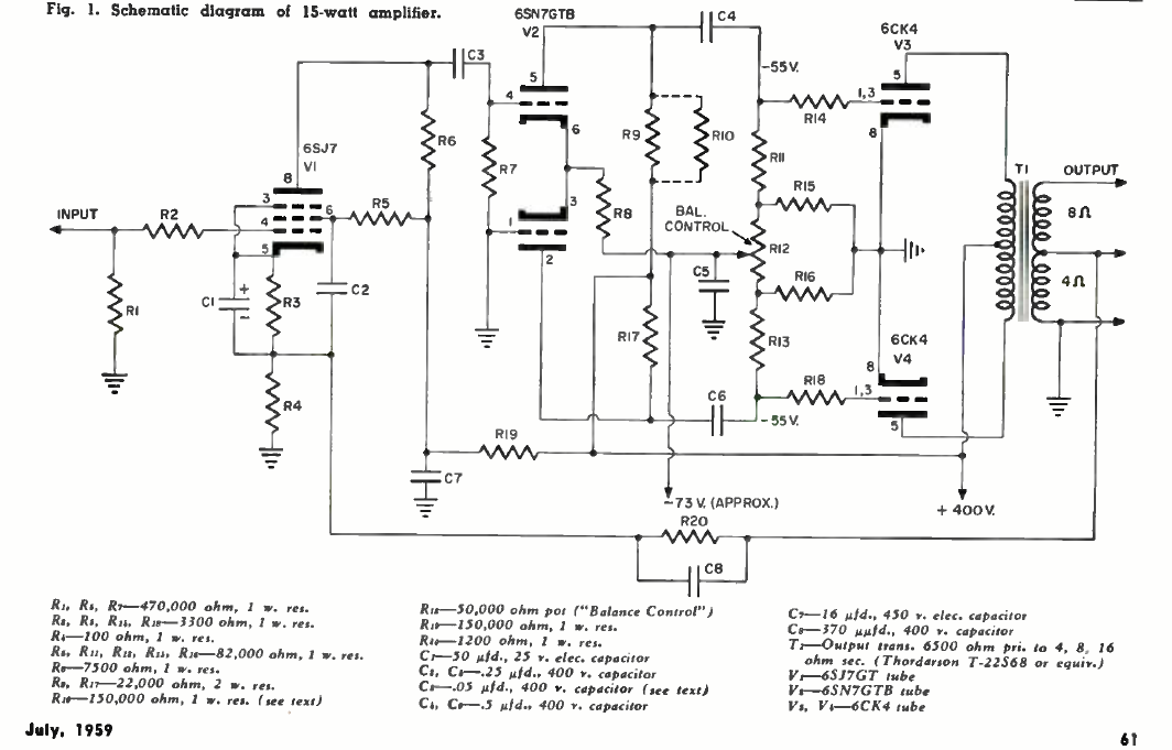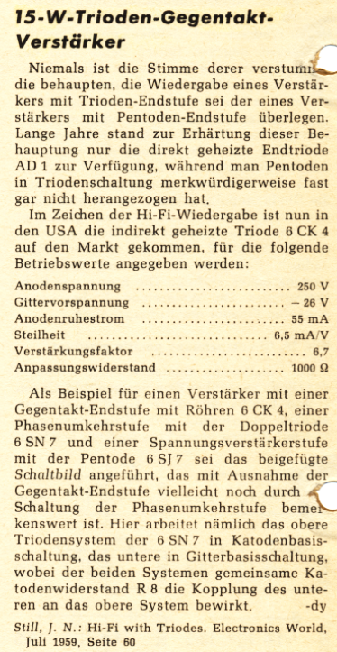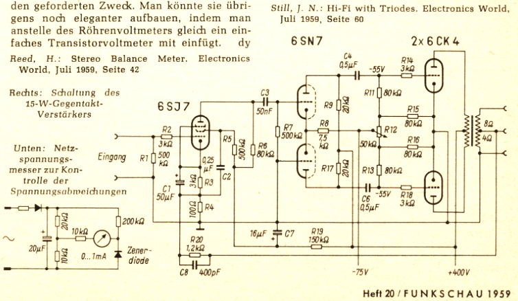 1. Funkschau 1959 Heft 20 / 15-W-Trioden-Gegentakt-Verstärker